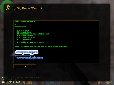 Modun kurulumu biraz zahmetli gelebilir. Rardan çıkan tüm dosyaları cstrike içine yapıştırın. Modun pluginlerini kendi makinanız da convert etmeniz gerek. Sma dosyalarını compile ederek amxx e sizin çevirmeniz lazım. İndirdiğiniz dosyalar da scripting klasöründeki cod_mw2_mod.sma ve infinite_round.sma dosyalarını amxx çevirin. Daha sonra bu iki dosyayı plugins klasörüne atın.